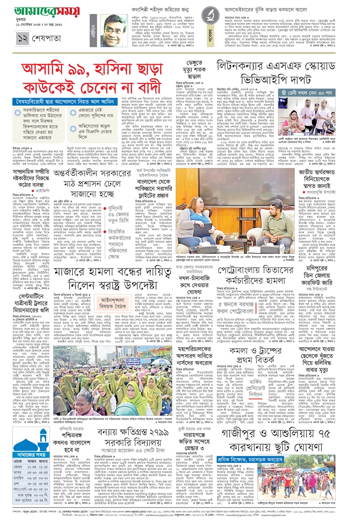 ই-পেপার [ ১১ সেপ্টেম্বর ২০২৪ ]