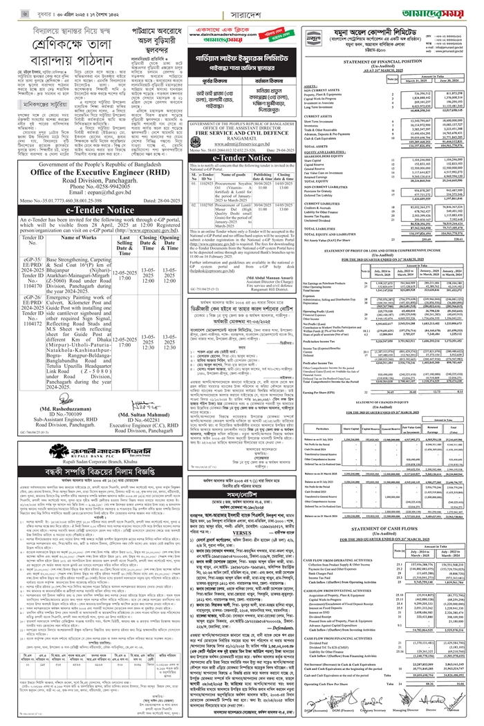 ই-পেপার [ ৩০ এপ্রিল ২০২৫ ]