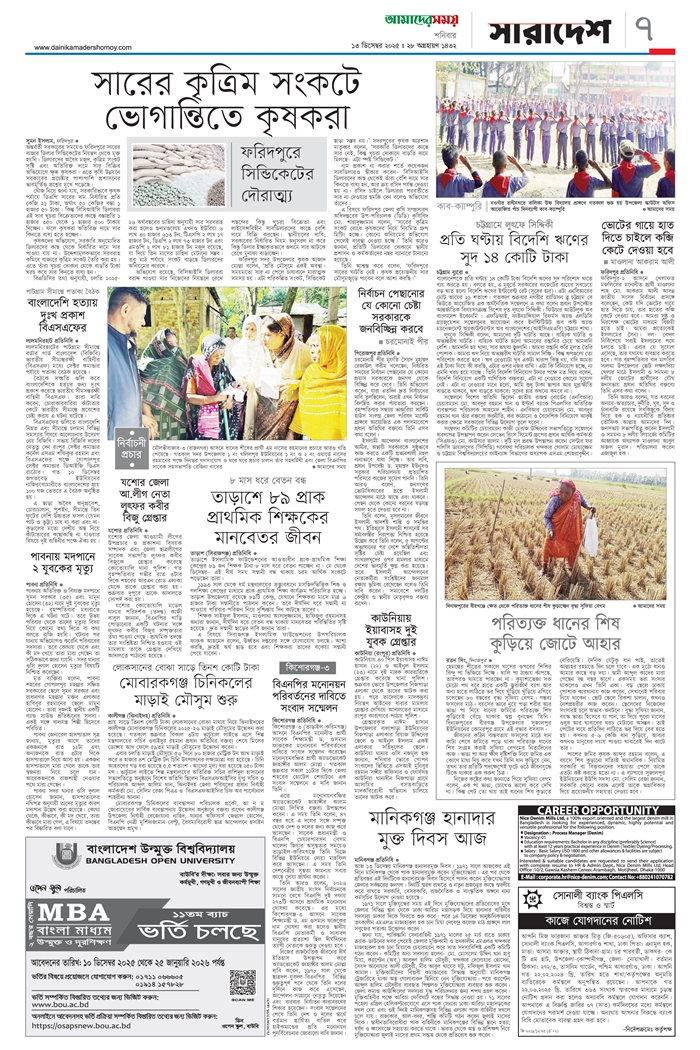 ই-পেপার [ ১৩ ডিসেম্বর ২০২৫ ]