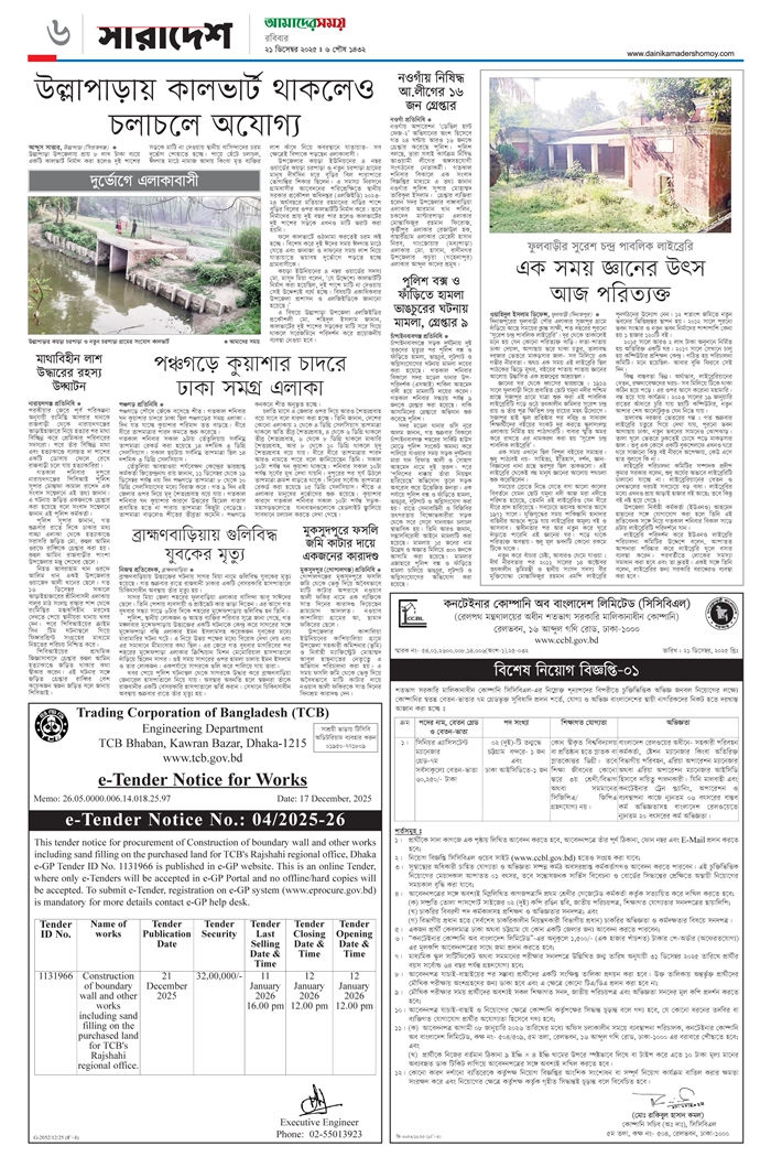 ই-পেপার [ ২১ ডিসেম্বর ২০২৫ ]