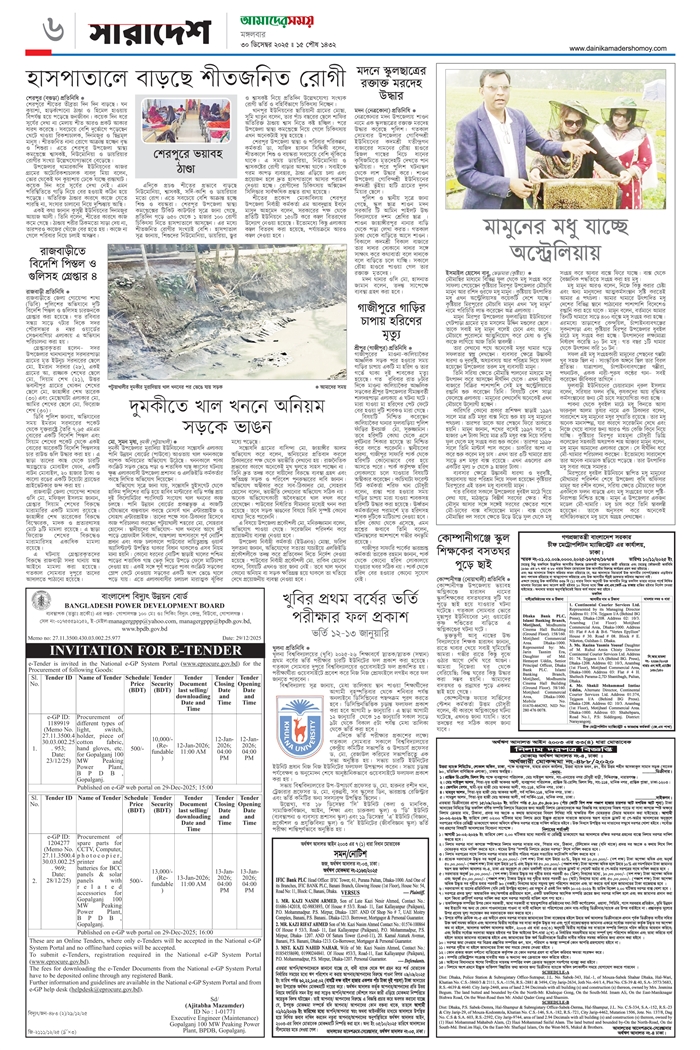 ই-পেপার [ ৩০ ডিসেম্বর ২০২৫ ]