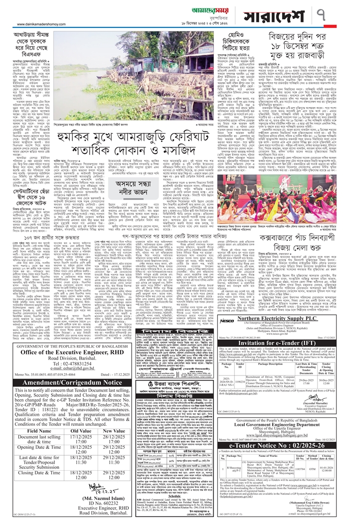 ই-পেপার [ ১৮ ডিসেম্বর ২০২৫ ]