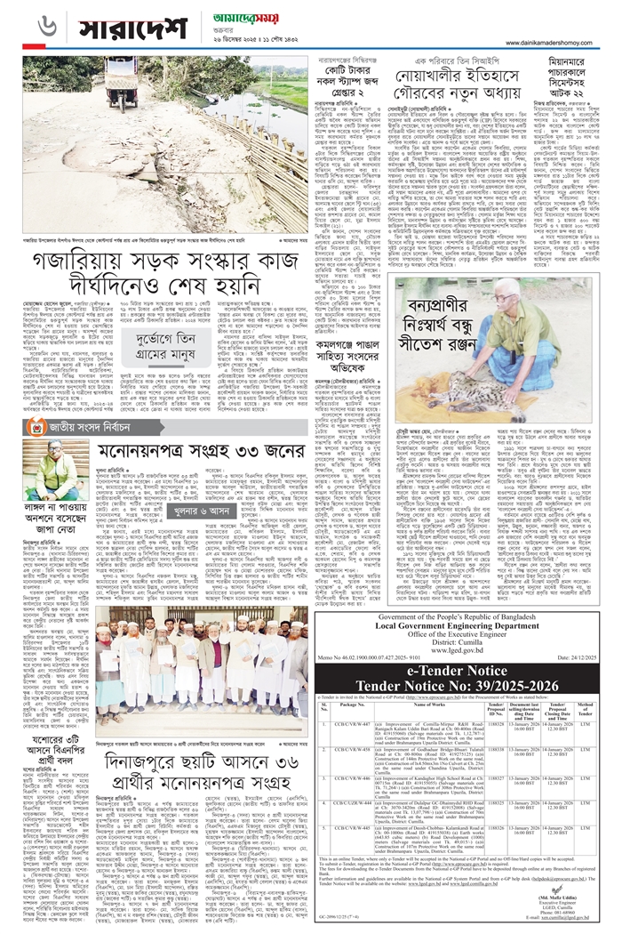 ই-পেপার [ ২৬ ডিসেম্বর ২০২৫ ]