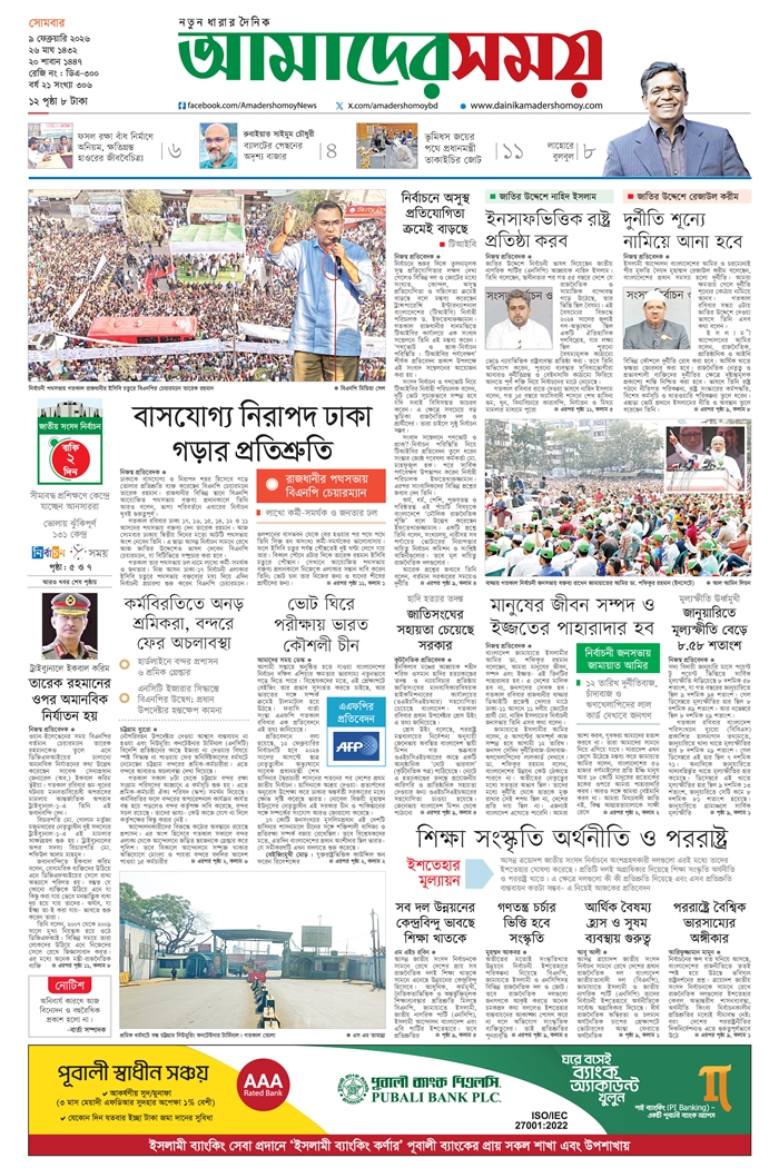 ই-পেপার [ ০৯ ফেব্রুয়ারি ২০২৬ ]
