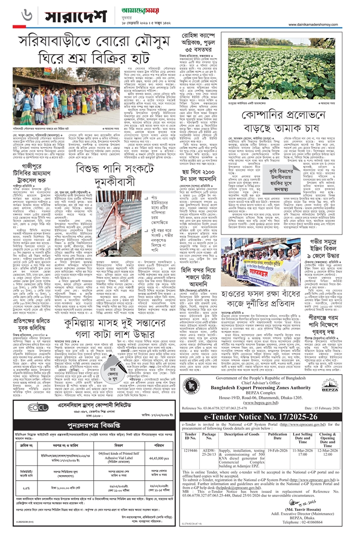 ই-পেপার [ ১৮ ফেব্রুয়ারি ২০২৬ ]