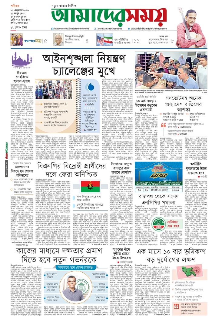 ই-পেপার [ ২৮ ফেব্রুয়ারি ২০২৬ ]