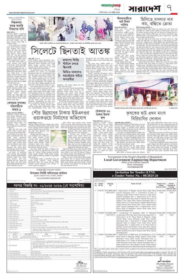 ই-পেপার [ ০৭ মার্চ ২০২৬ ]