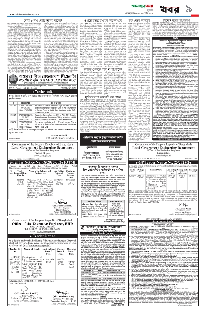 ই-পেপার [ ১৪ জানুয়ারি ২০২৬ ]