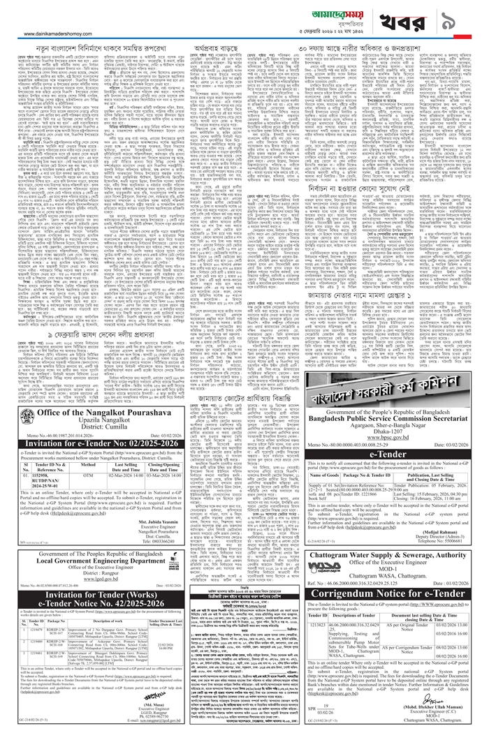 ই-পেপার [ ০৫ ফেব্রুয়ারি ২০২৬ ]