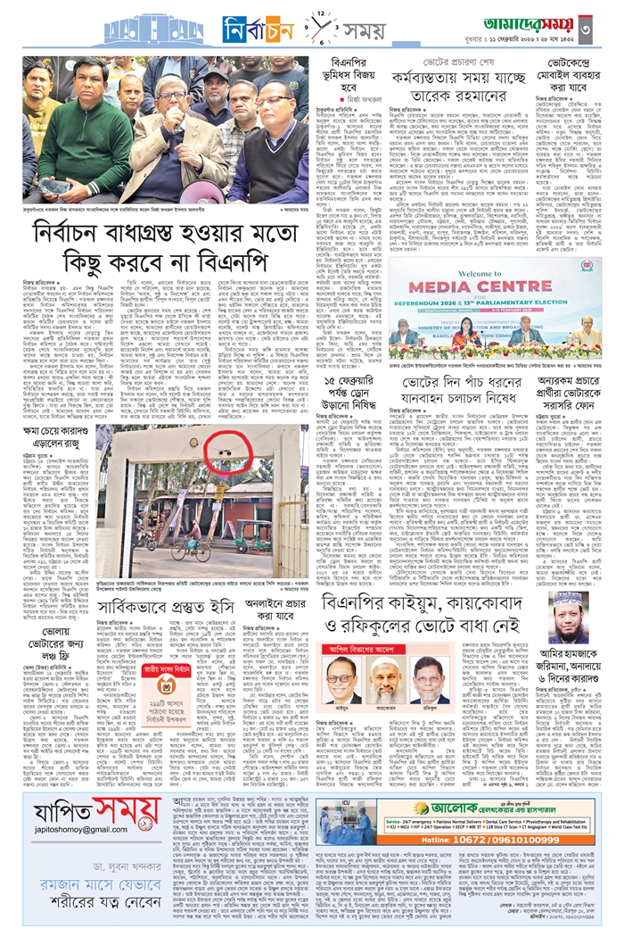ই-পেপার [ ১১ ফেব্রুয়ারি ২০২৬ ]