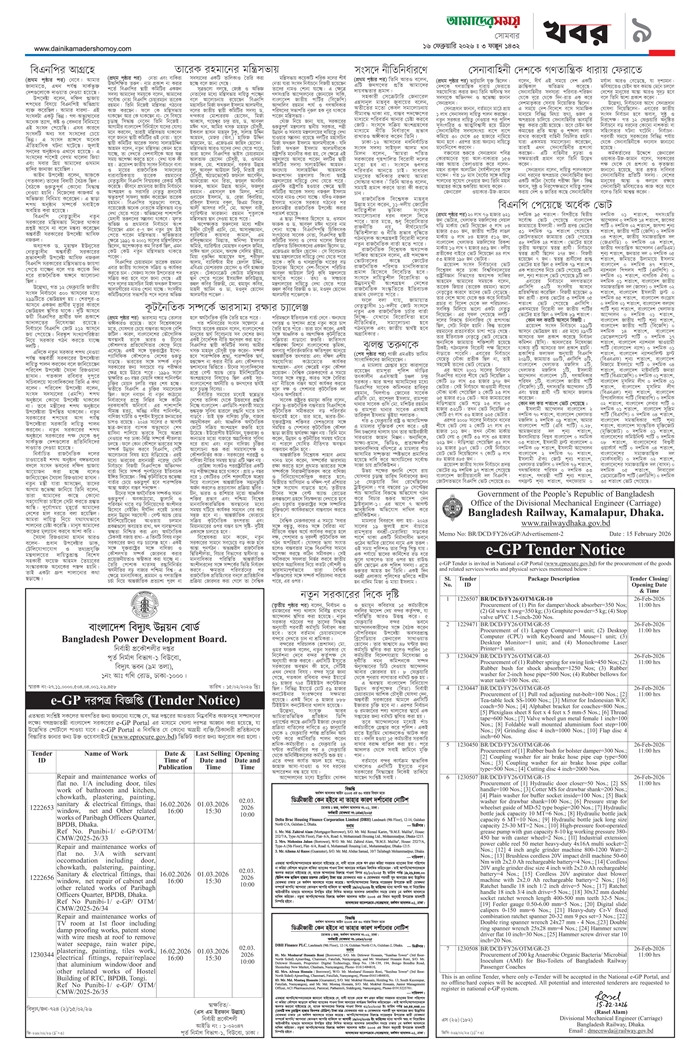 ই-পেপার [ ১৬ ফেব্রুয়ারি ২০২৬ ]