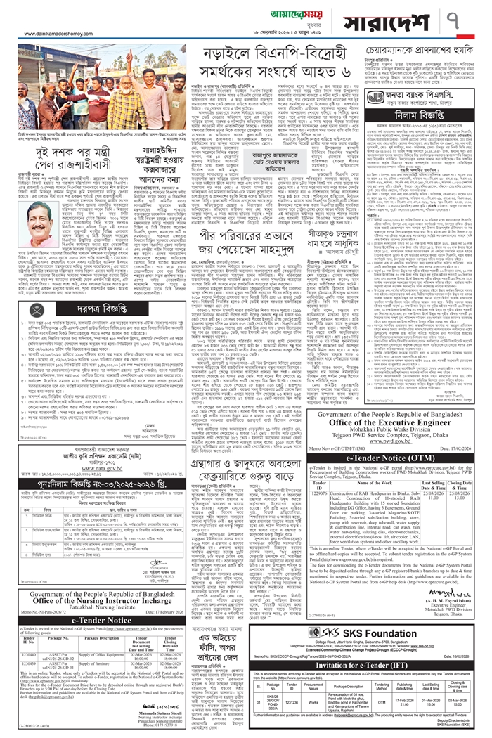 ই-পেপার [ ১৮ ফেব্রুয়ারি ২০২৬ ]