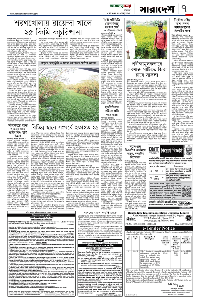 ই-পেপার [ ০৮ মার্চ ২০২৬ ]