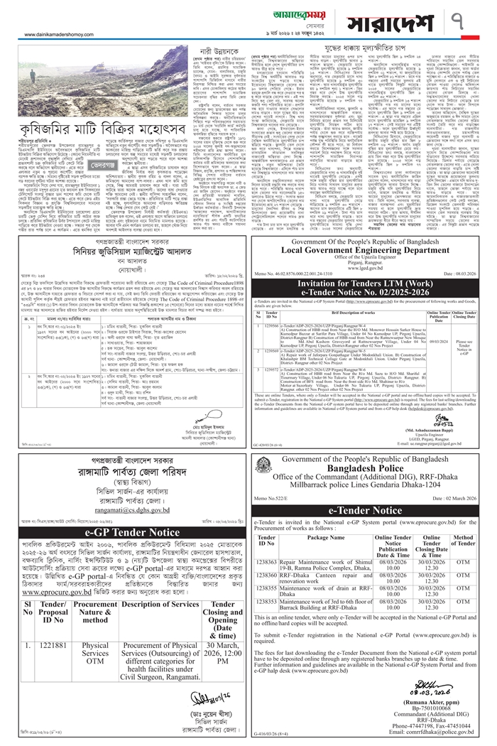 ই-পেপার [ ০৯ মার্চ ২০২৬ ]