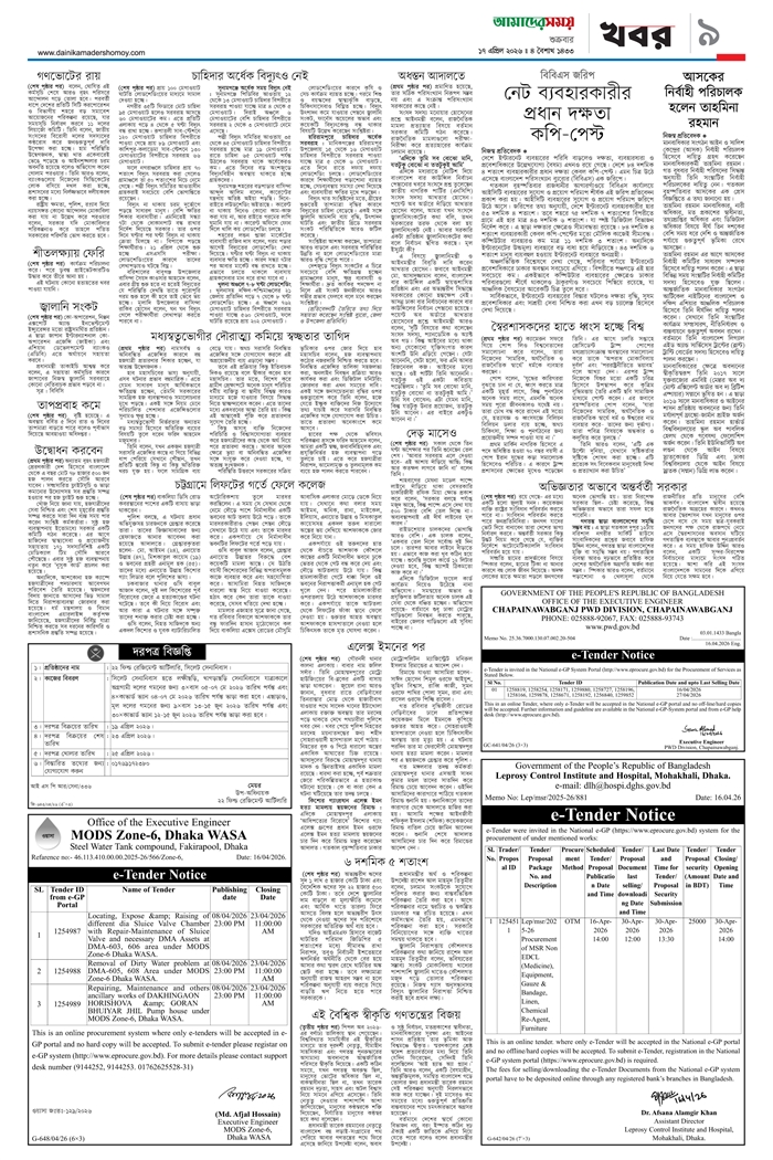 ই-পেপার [ ১৭ এপ্রিল ২০২৬ ]