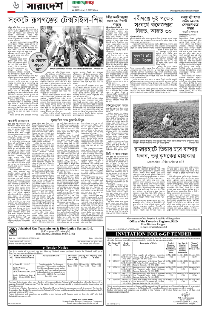 ই-পেপার [ ২০ এপ্রিল ২০২৬ ]